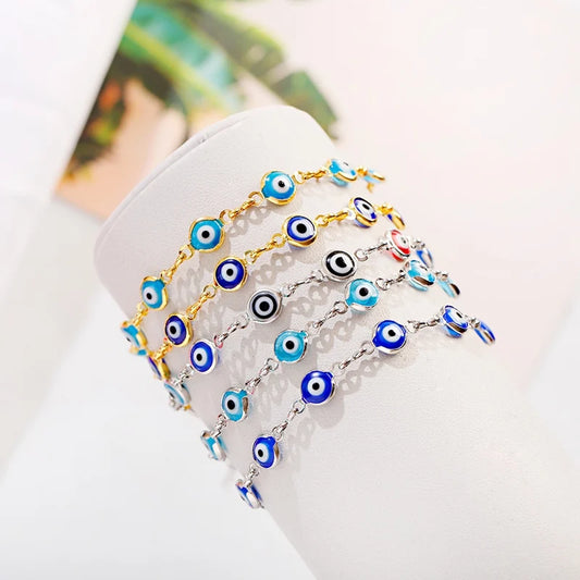 New Women's Blue Evil Eye Chain Adjustable Bracelet Vintage Gold Color Turkish Demon Charm Bracelets Friendship Jewelry Gifts