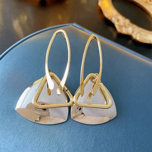Women's High-End Metallic Hollow Triangle Silver Stud Earrings
