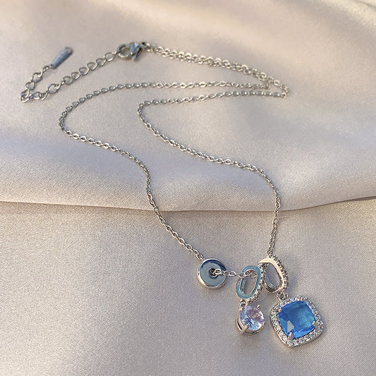 Women's Super Shiny Blue Zircon Necklace Niche High-end Clavicle Chain