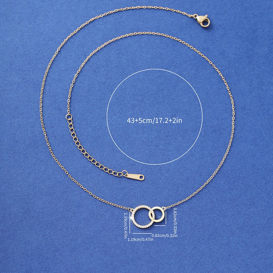 Women's Simple Design Asymmetrical Size Double Ring Clavicle Necklace Versatile