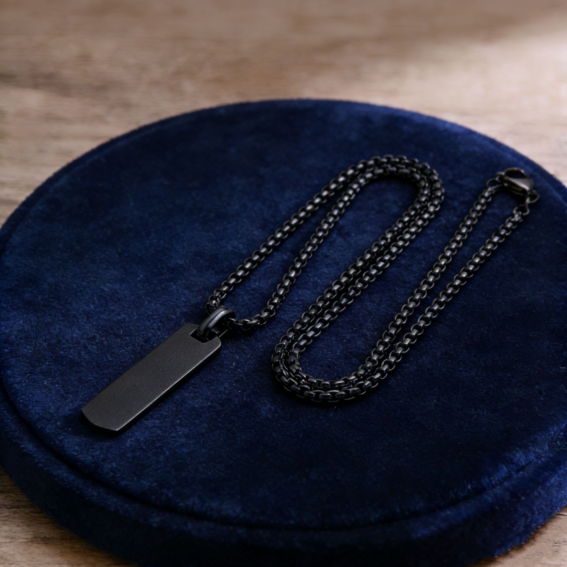 18k Gold Stainless Steel Engraved Three-dimensional Rectangular Bar Pendant Necklace