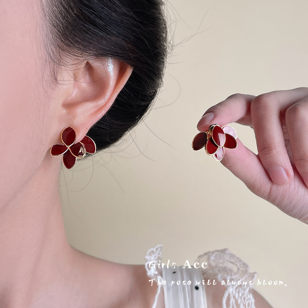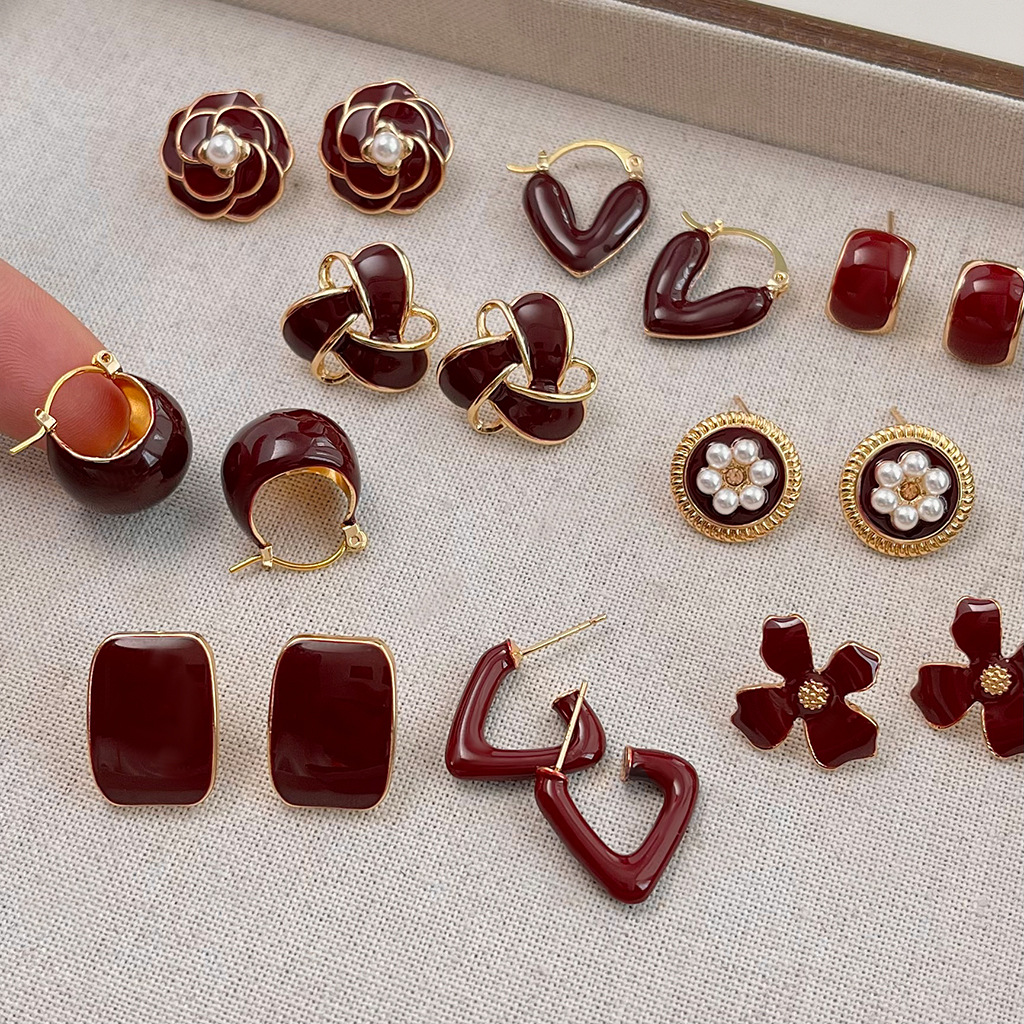 Ankola Red Oil-drop Earrings Feminine And Vintage Style