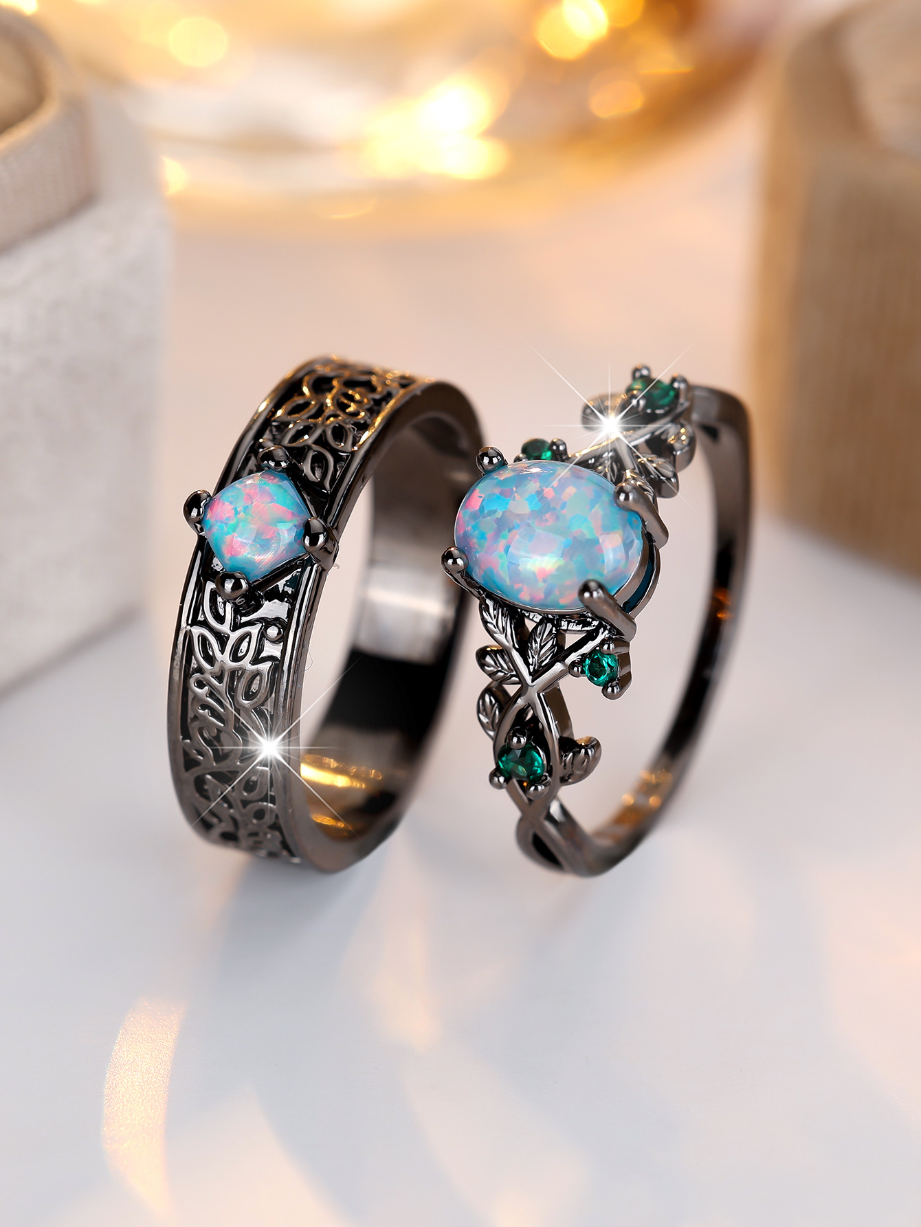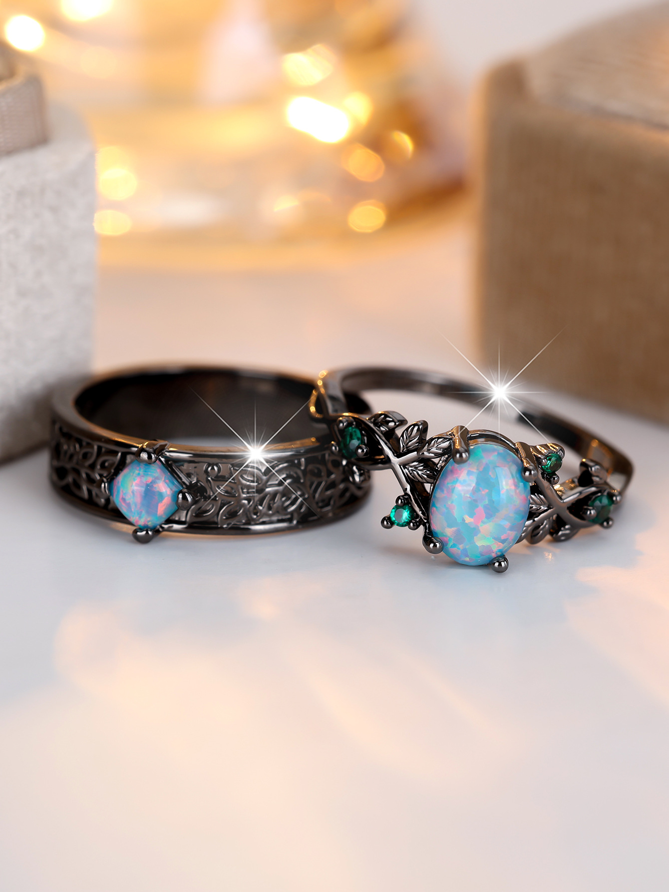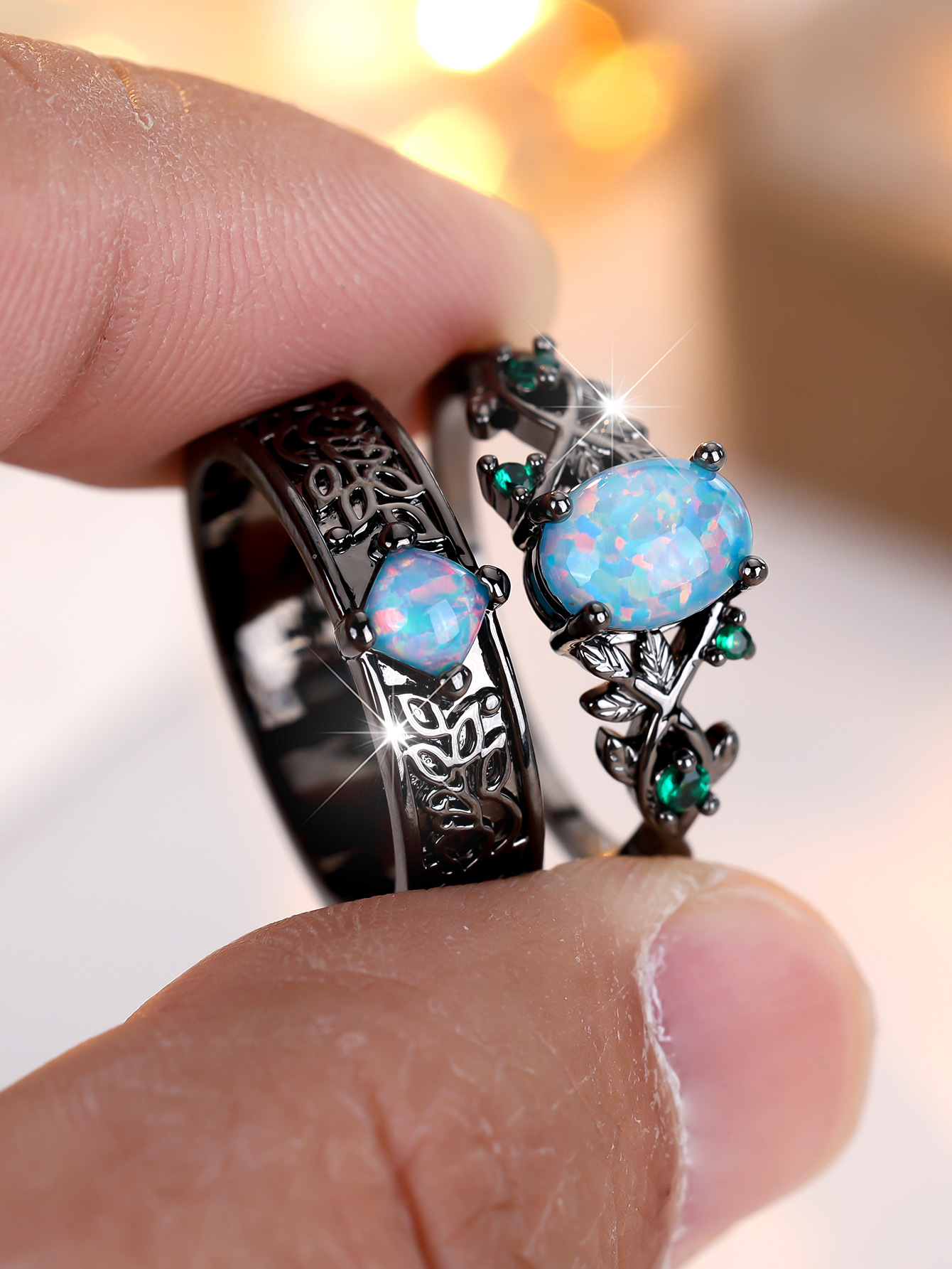 Black Gold Egg-shaped Blue Crystal Sand Ring Niche And Distinctive
