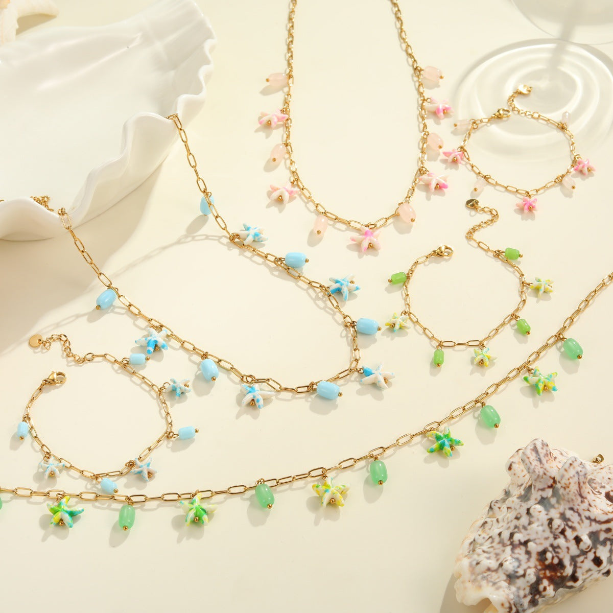 Colorful Starfish Stainless Steel Necklace Non-fading Ocean Style Bracelet