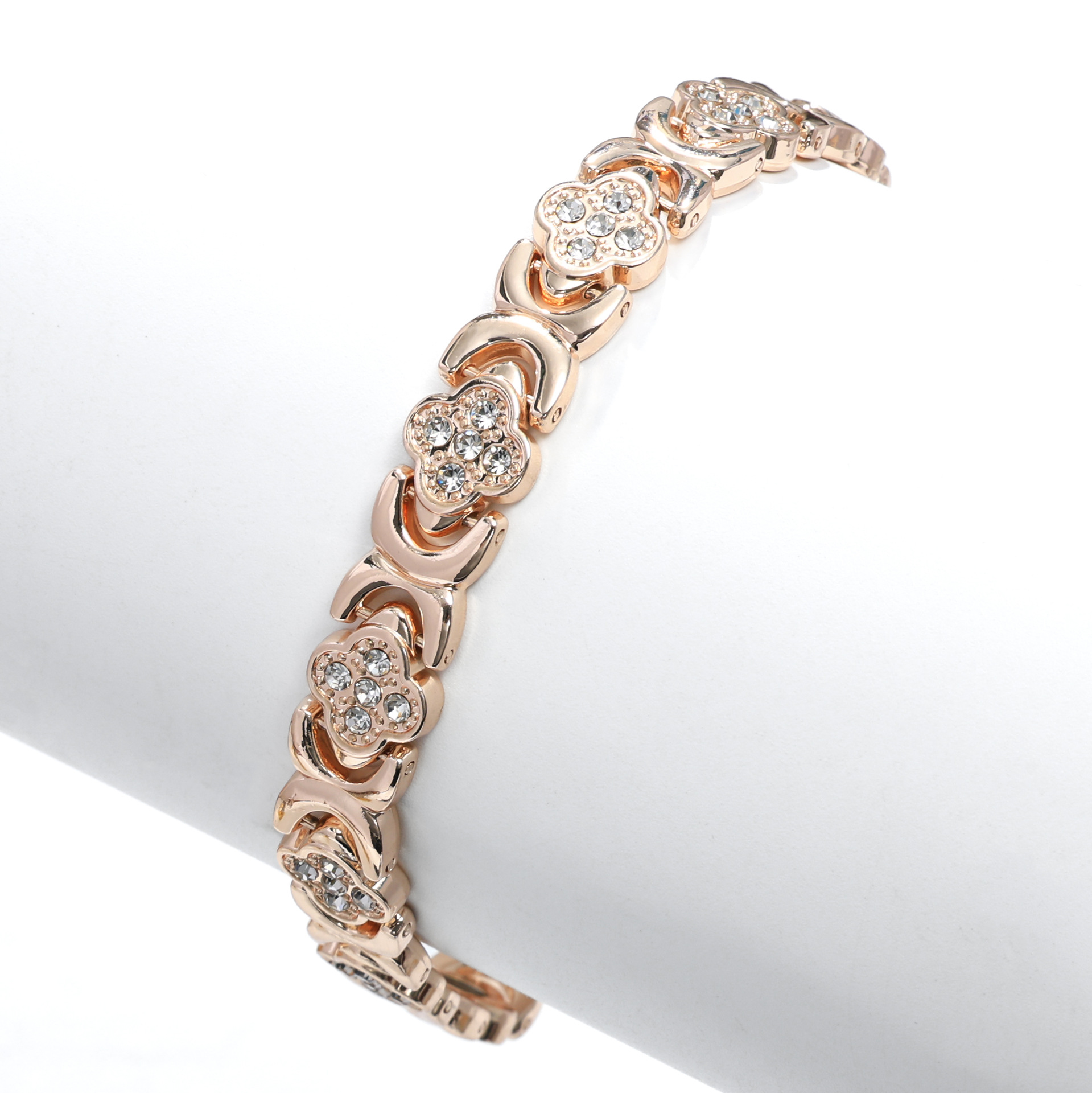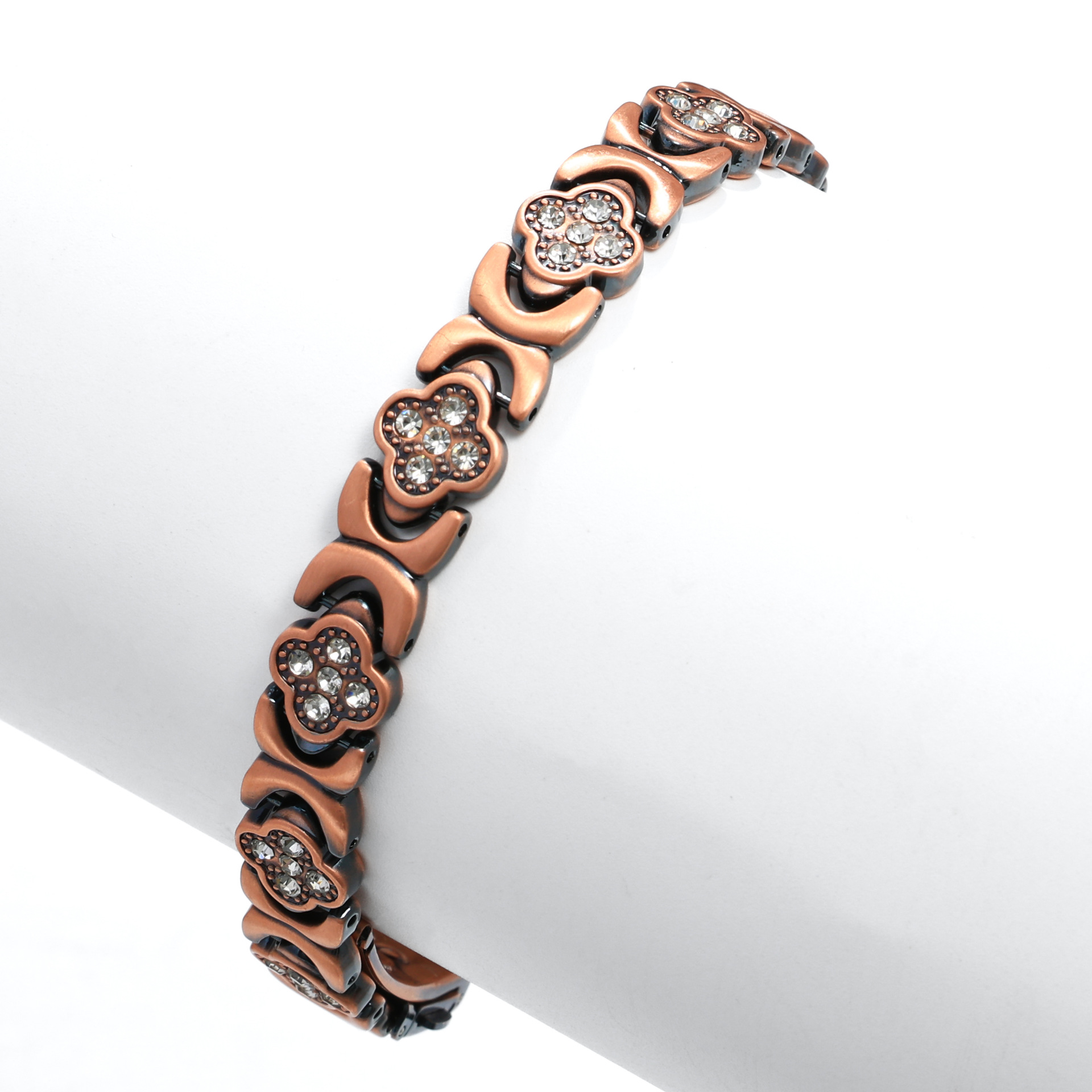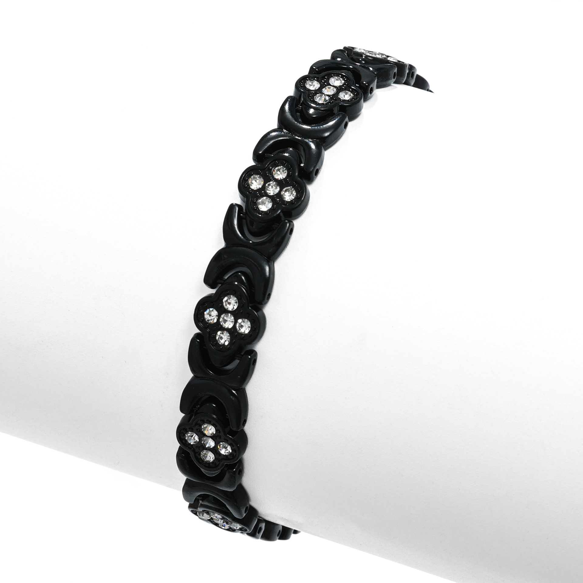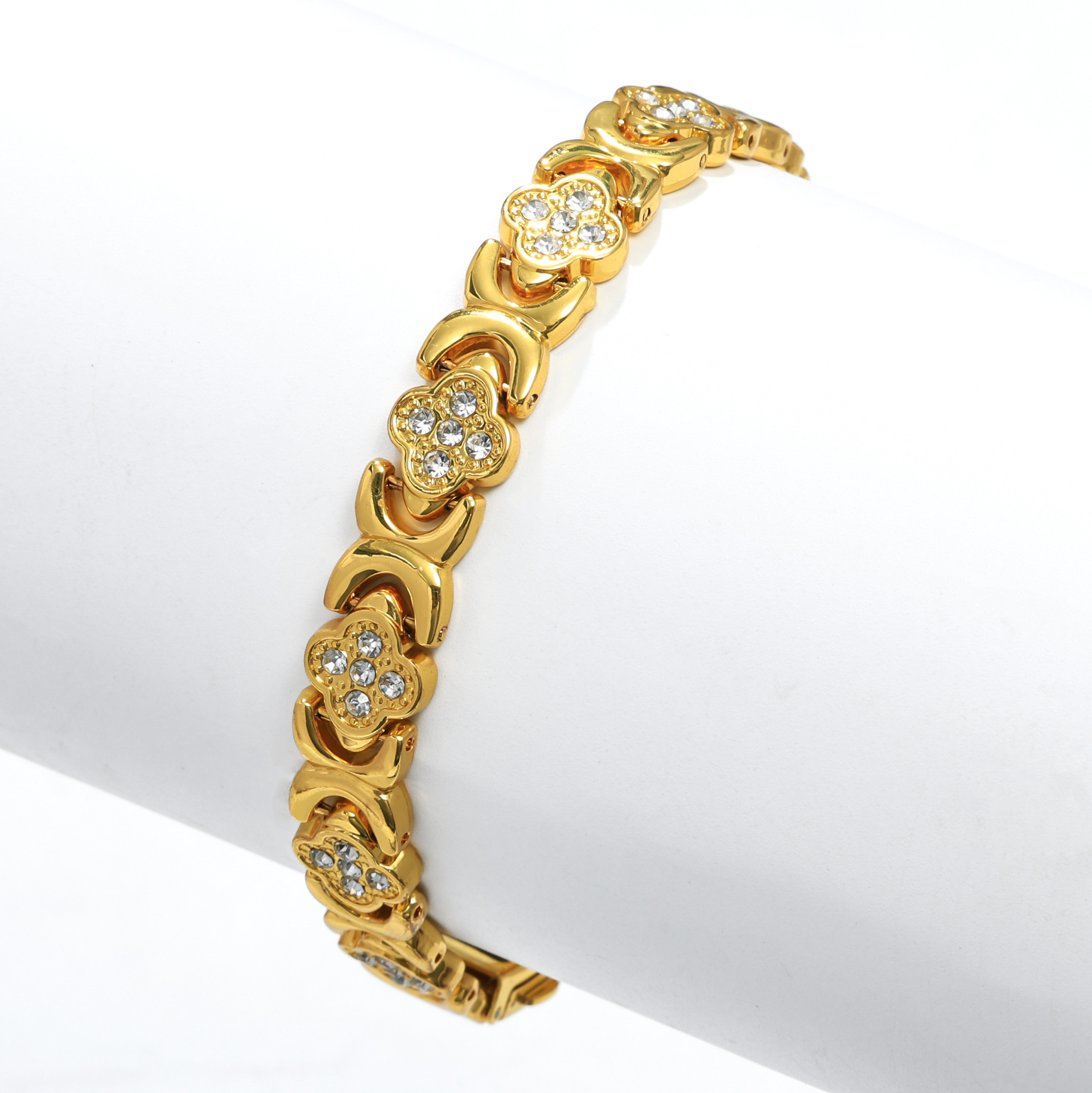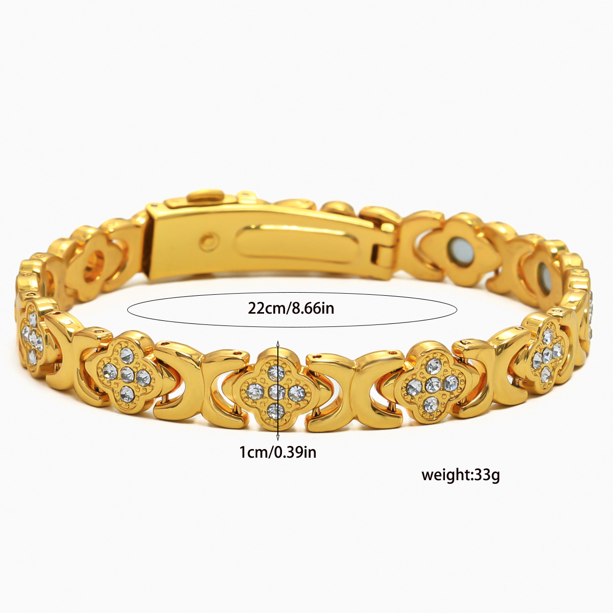 Fashionable, Light-Luxury Lucky Clover Alloy Diamond-Encrusted Single-Row Magnetic Bracelet For Women
