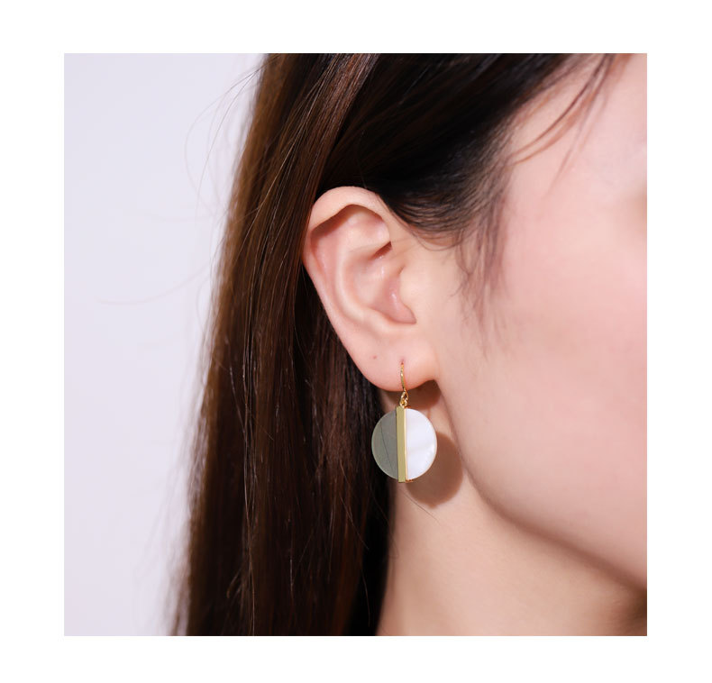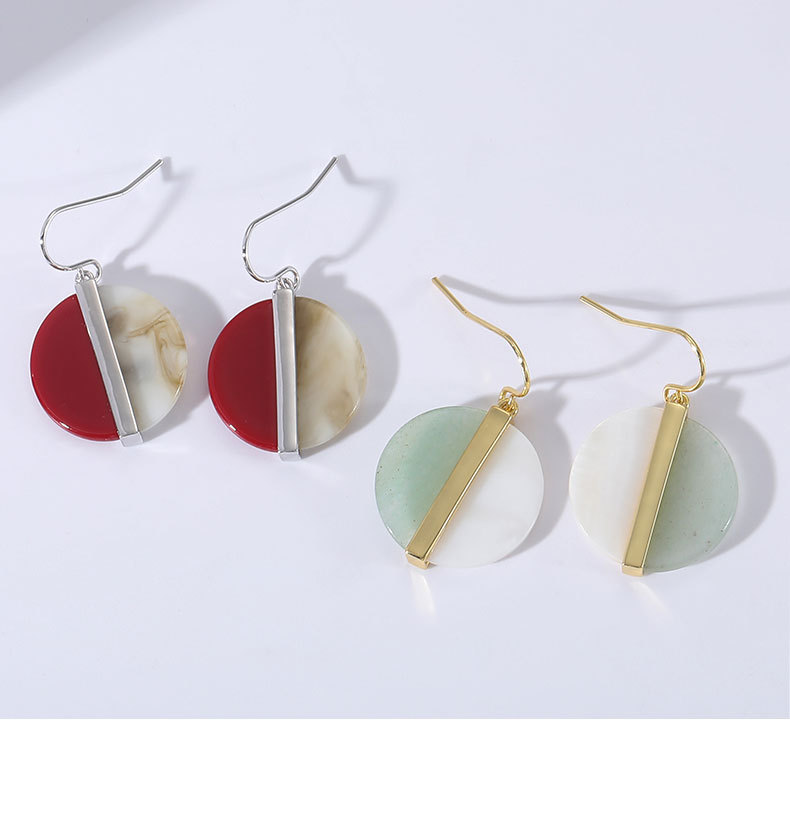Geometric Inlaid Semi-precious Stone Two-tone Earrings