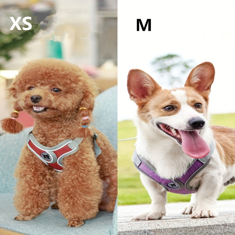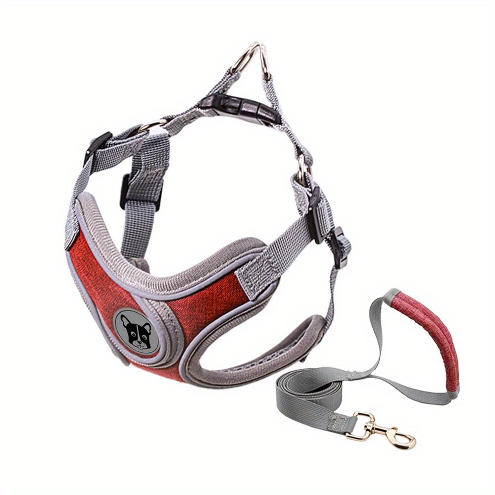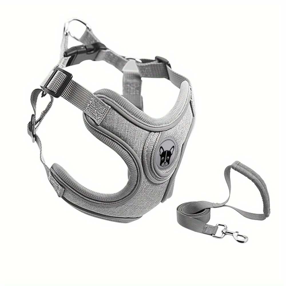 Gray Comfortable Breathable Adjustable Reflective Dog Harness Vest - Polyester, Nighttime Safety Leash Set for Small to Medium Dogs