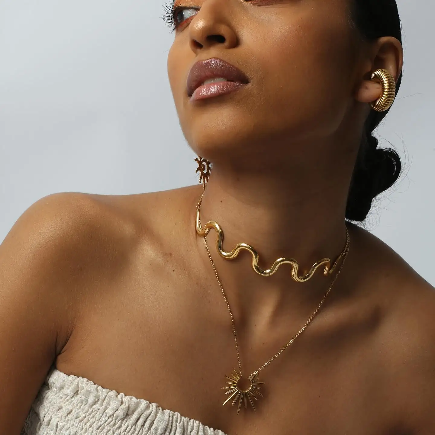 Jewelry Set Circle Dangle Earrings Natural Colorful Stone Chain Necklace