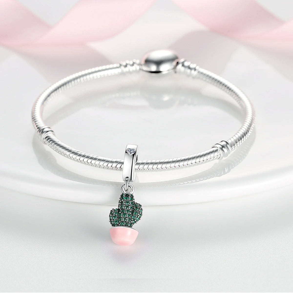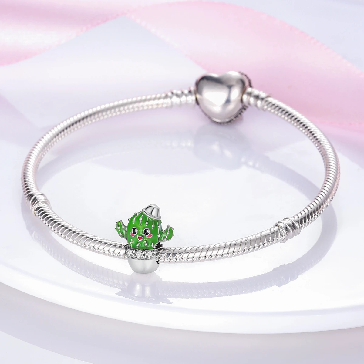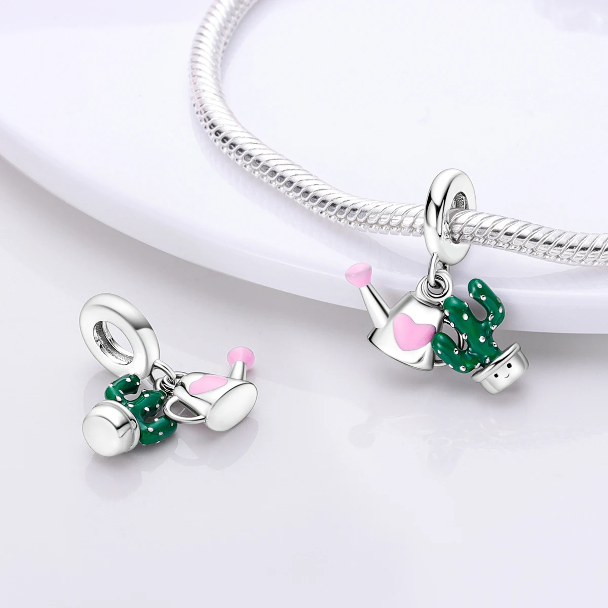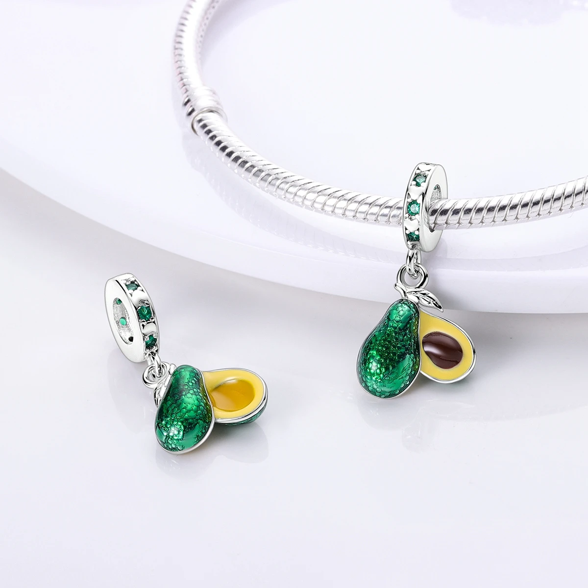 Silver Plated Charms For Woman Summer Green Cactus Avocado Beads Fit Original Bracelet Necklace DIY Dangle Charms