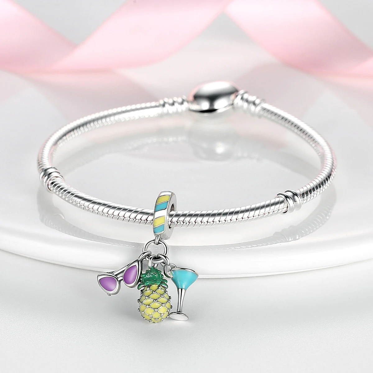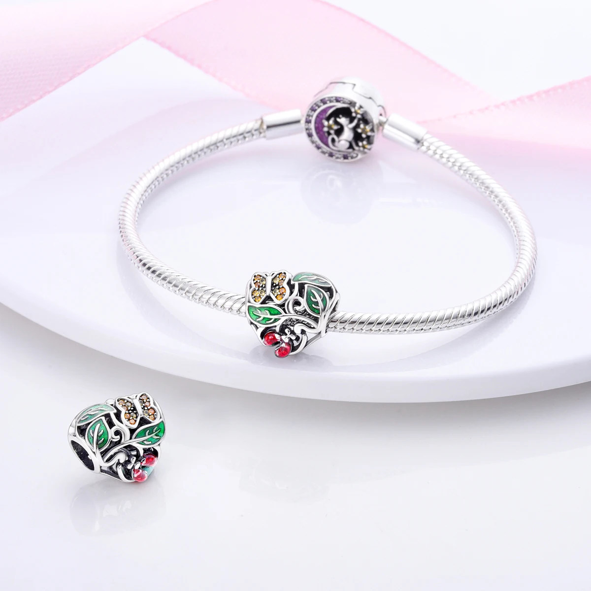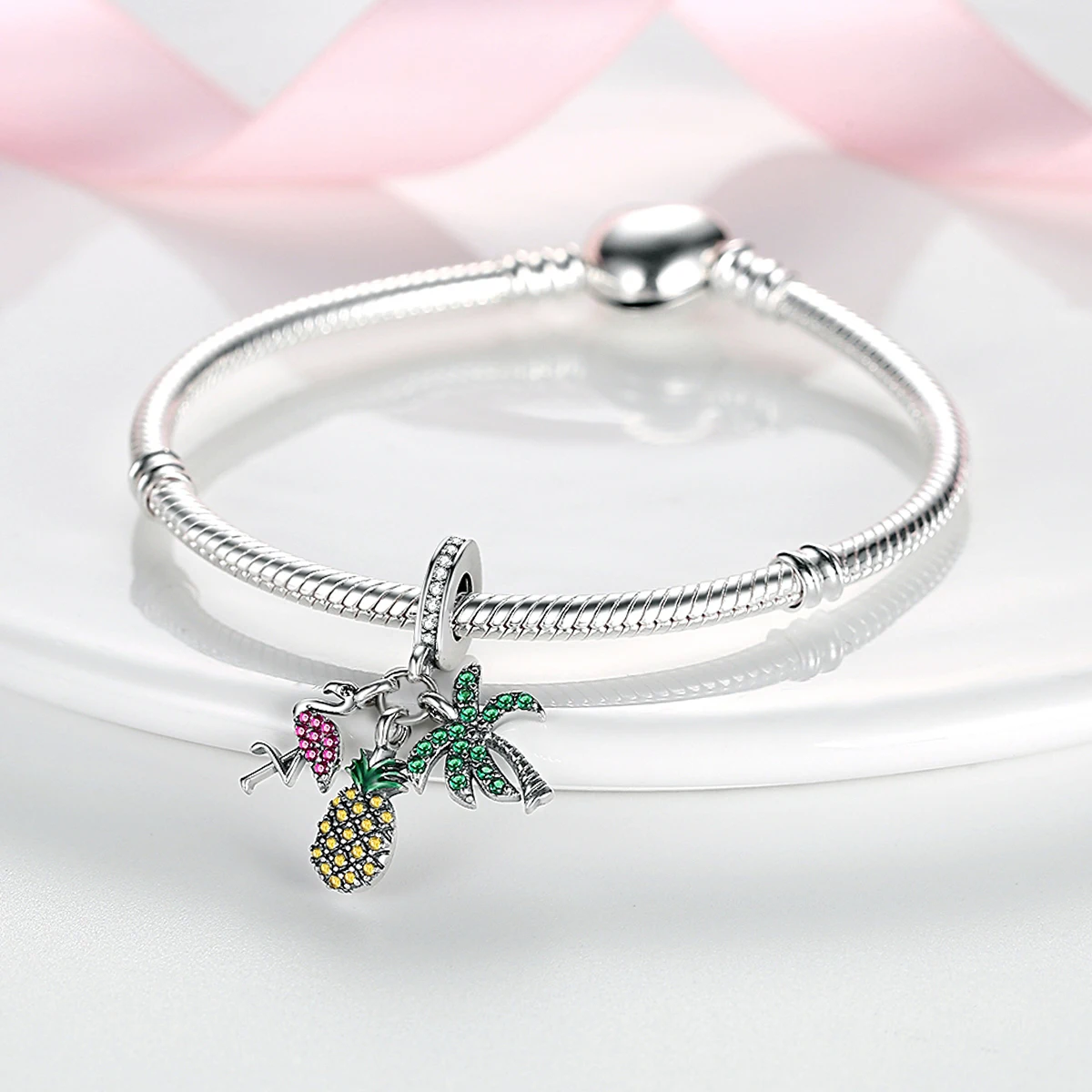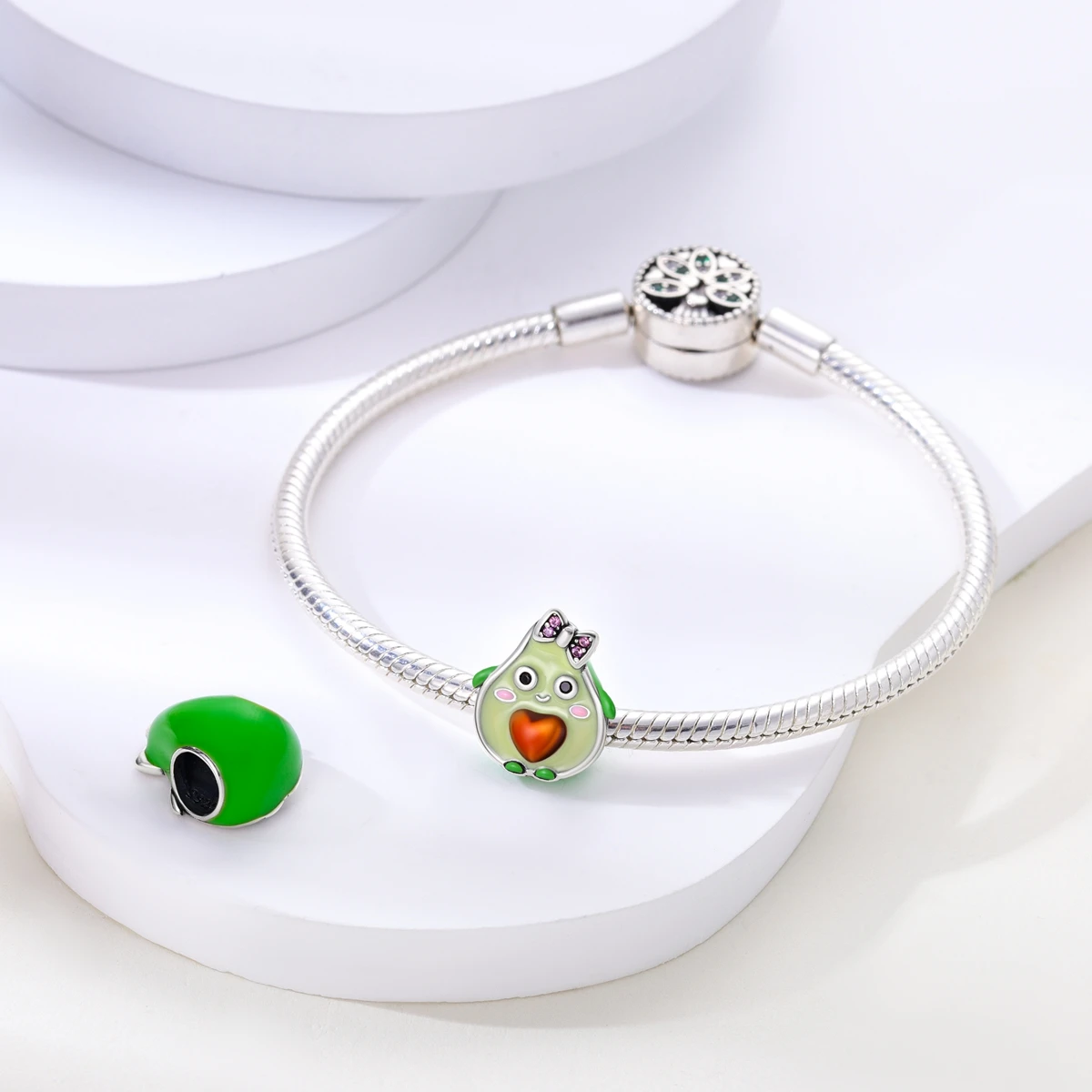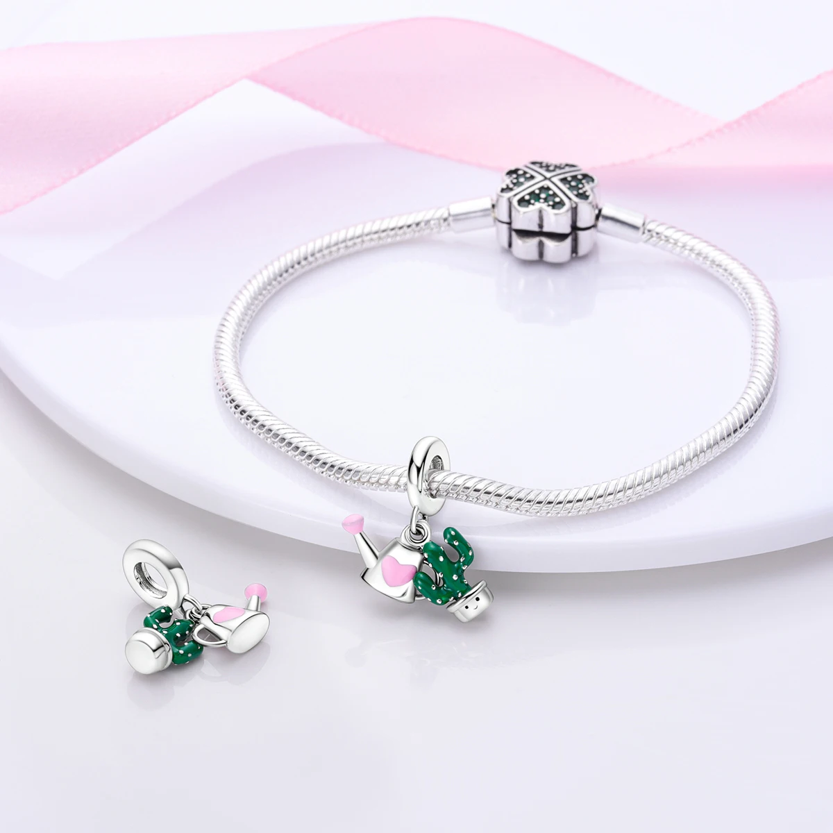 Silver Plated Charms For Woman Summer Green Cactus Avocado Beads Fit Original Bracelet Necklace DIY Dangle Charms