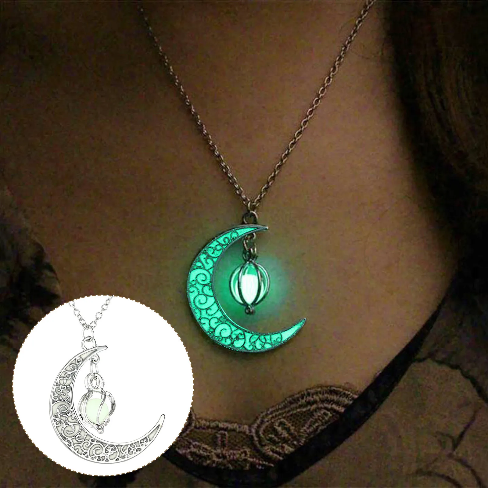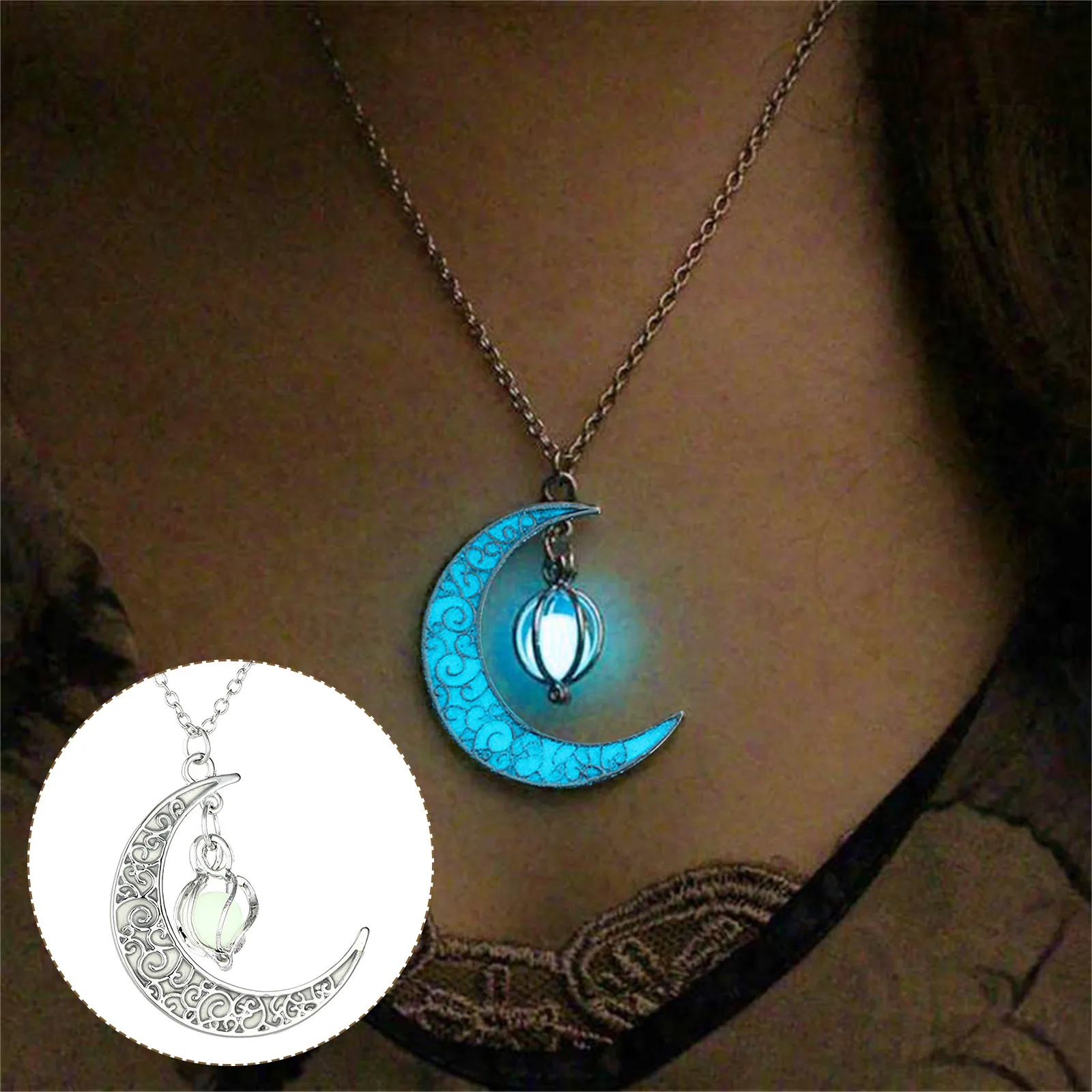 Hollow Luminous Moon Whirlwind Rotating Bead Necklace Jewelry