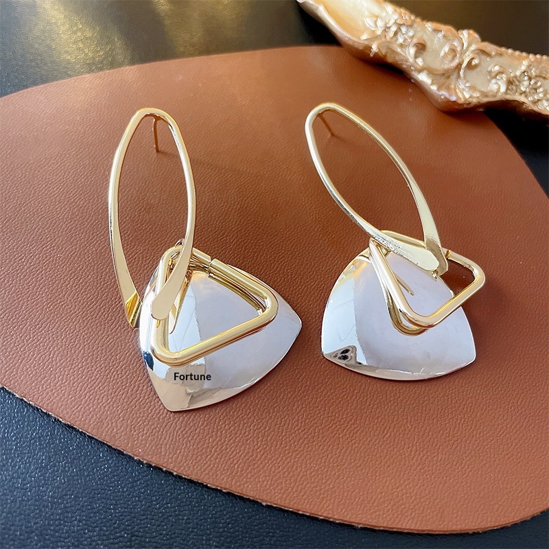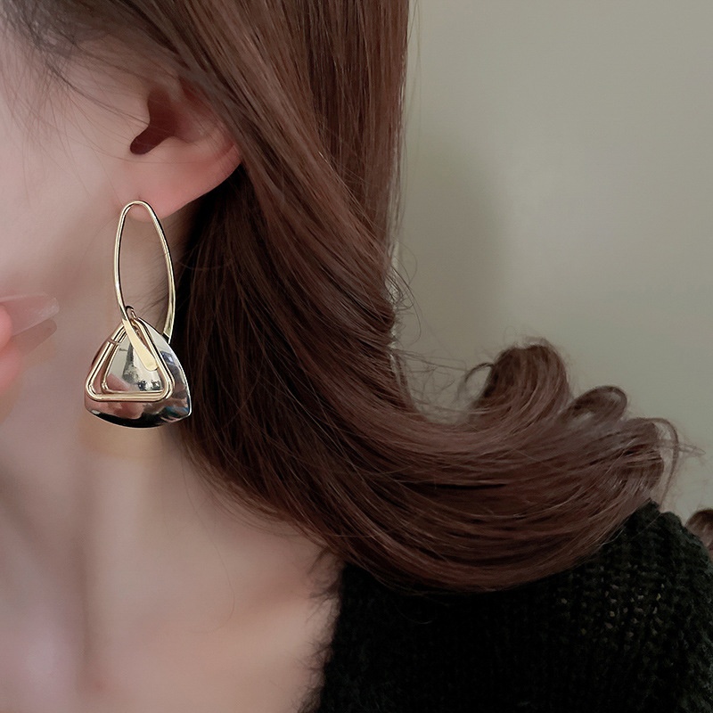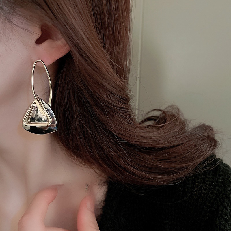 Women's High-End Metallic Hollow Triangle Silver Stud Earrings