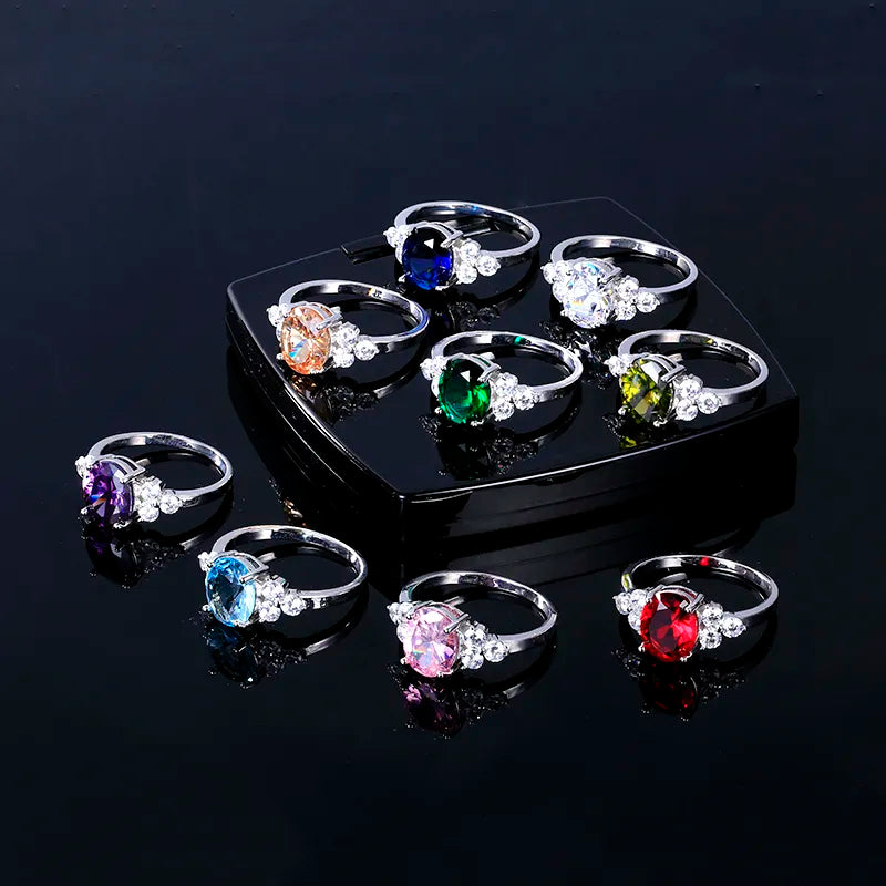 Women's Jewelry 925 Sterling Silver Rings White Pink Light Blue Champagne Zircon Oval Wedding Ring.Free shipping